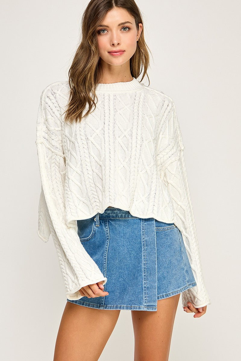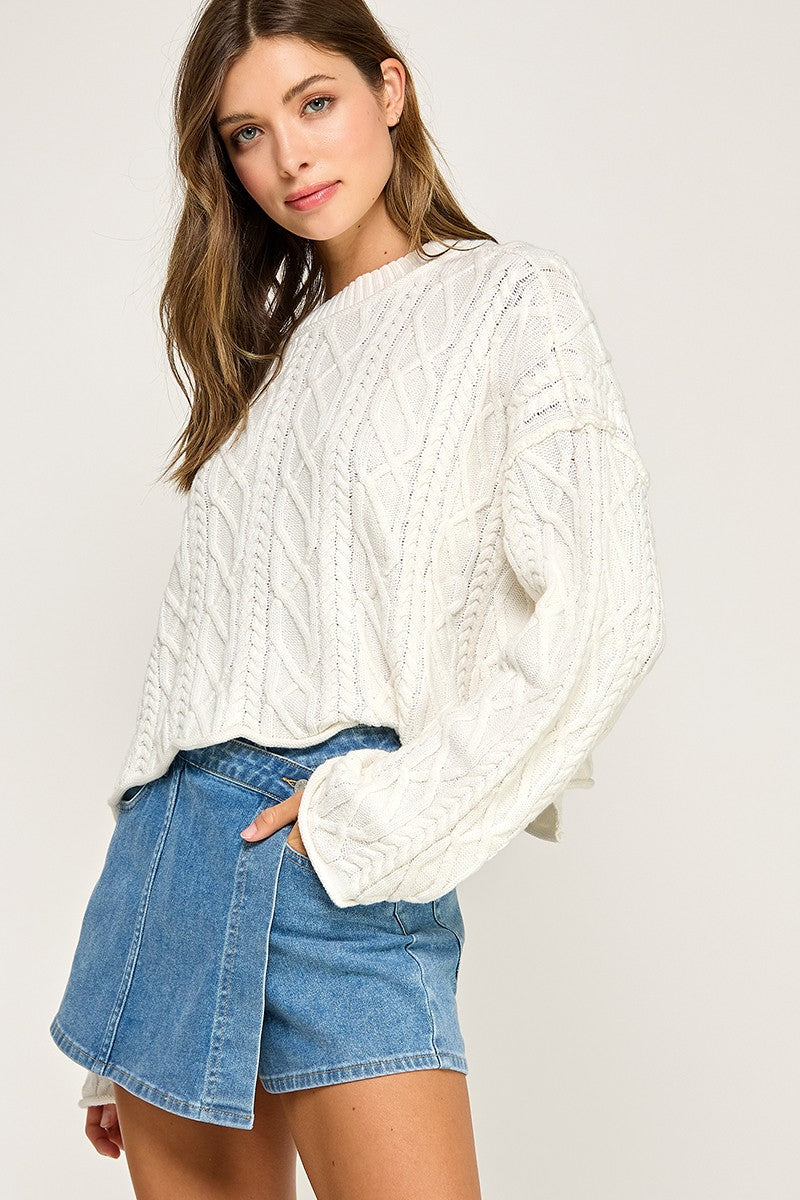 Add a cozy twist to your outfit with the Cider Season Sweater in Off White. This cropped pullover combines playful cable knit designs with a relaxed fit, making it an effortless go-to for cool days. Pair it with your favorite high-waisted jeans or skirts for an easy, stylish look that feels as good as it looks. Perfect for embracing sweater weather with a splash of sunny charm!