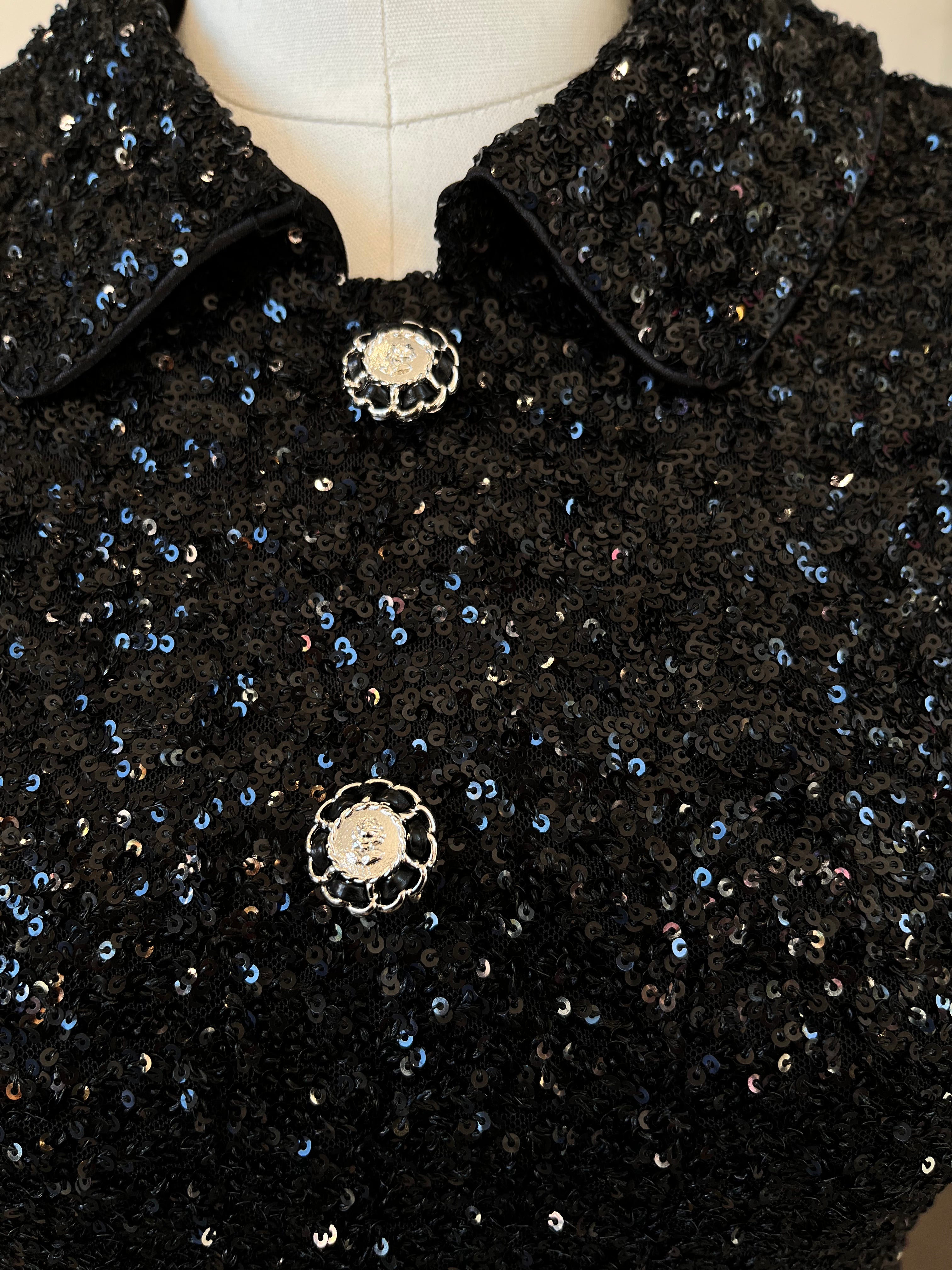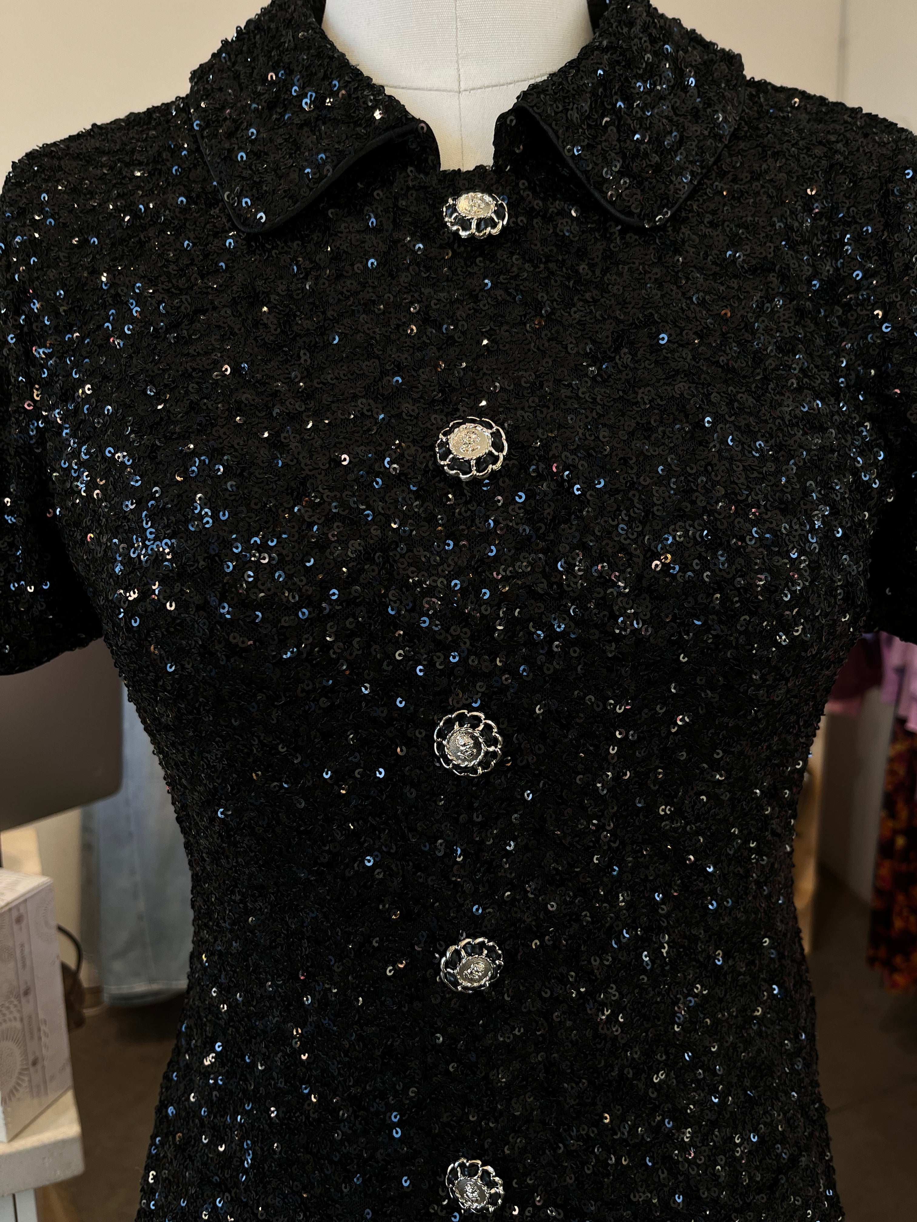 Polo Knit Sequin Mini Dress (Black)