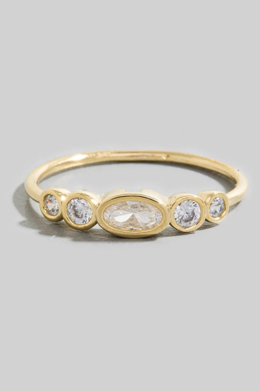 Elevate your everyday sparkle with this gold-dipped oval station ring—a playful twist on timeless elegance. Featuring a stunning cubic zirconia stone set in a classic oval design, this beauty delivers serious shine without the serious price tag. The delicate gold dipping catches the light beautifully, making it perfect for stacking or wearing solo. Sized at 6.5, it's ready to become your new favorite go-to piece. Because who says you can't have fun while looking fabulous?