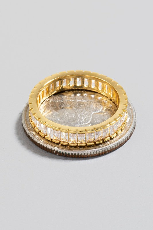 Gold Plated Baguette Pave Band Ring