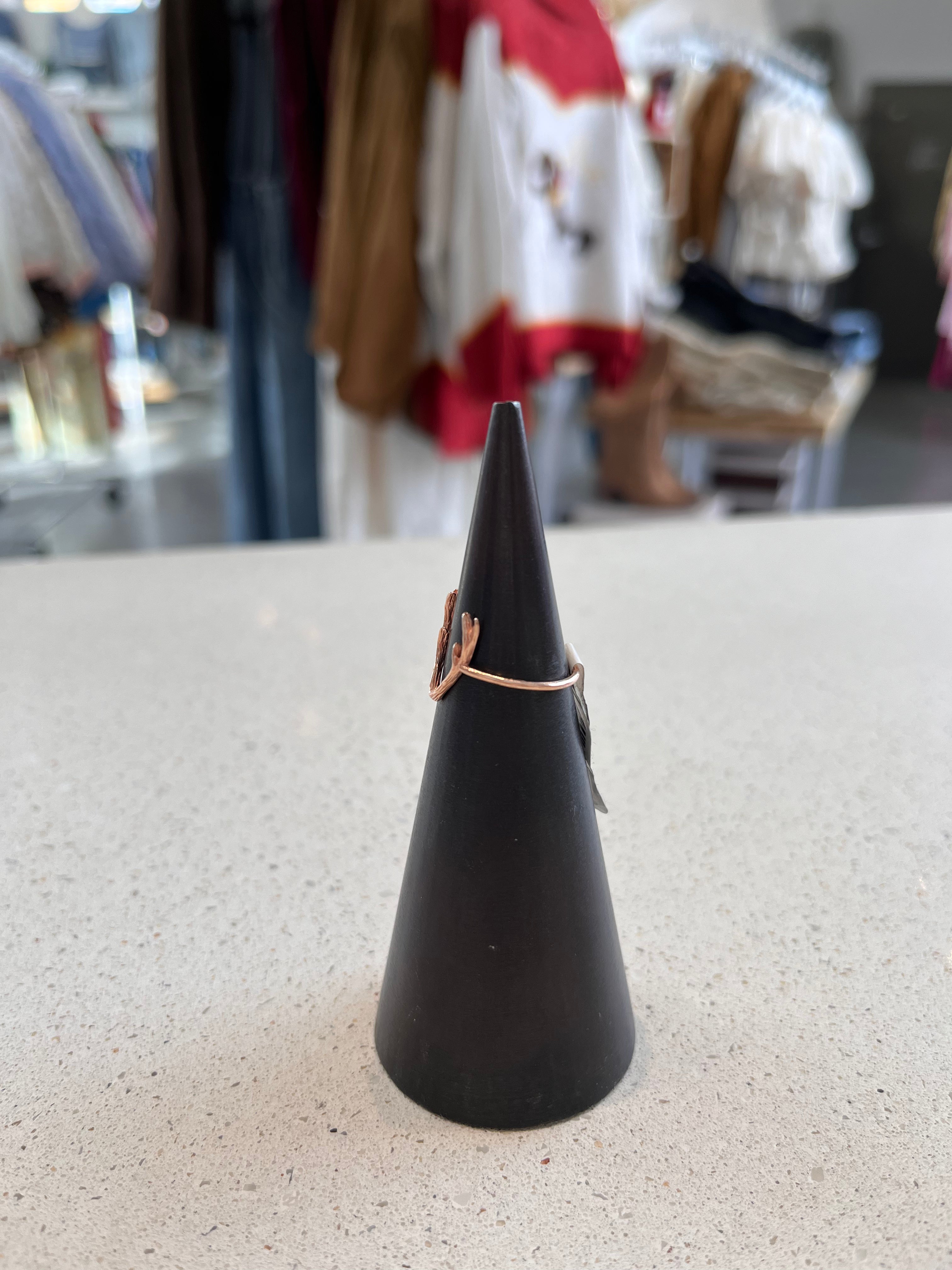 Embrace your wild side with this striking bronze ring, featuring an intricate antler design at its center. Perfect for nature lovers and free spirits, this piece captures the untamed beauty of the wilderness in wearable form. The warm bronze finish adds earthy sophistication to any look, while the bold antler motif serves as a conversation starter. Whether you're drawn to outdoor aesthetics or seeking a unique statement piece, this ring brings natural elegance to your everyday style. A timeless accessory that celebrates your connection to nature.