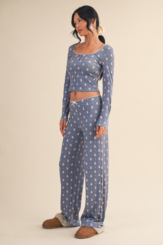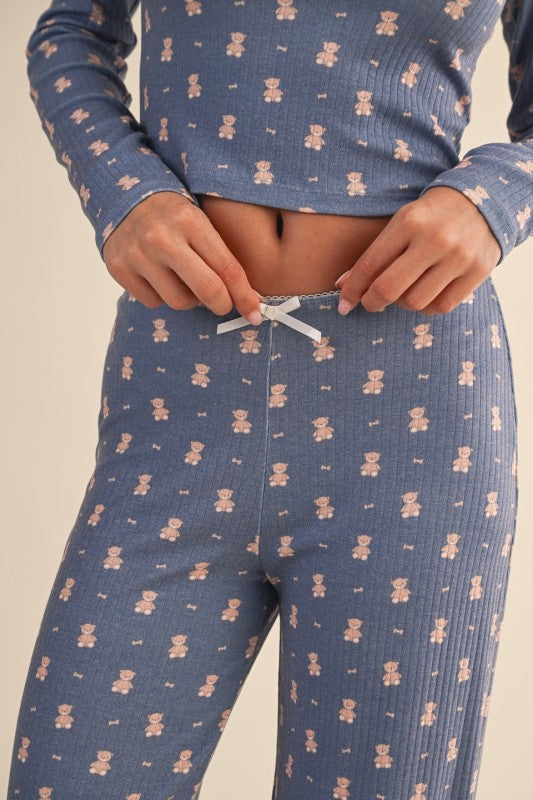 Embrace cozy days with the Teddy Time Set in navy blue. Crafted from ultra-soft fabric, this playful lounge set features a charming allover teddy bear print, adding a touch of fun to your downtime. Perfect for relaxing, layering, or enjoying lazy Sundays, it combines comfort and style effortlessly.