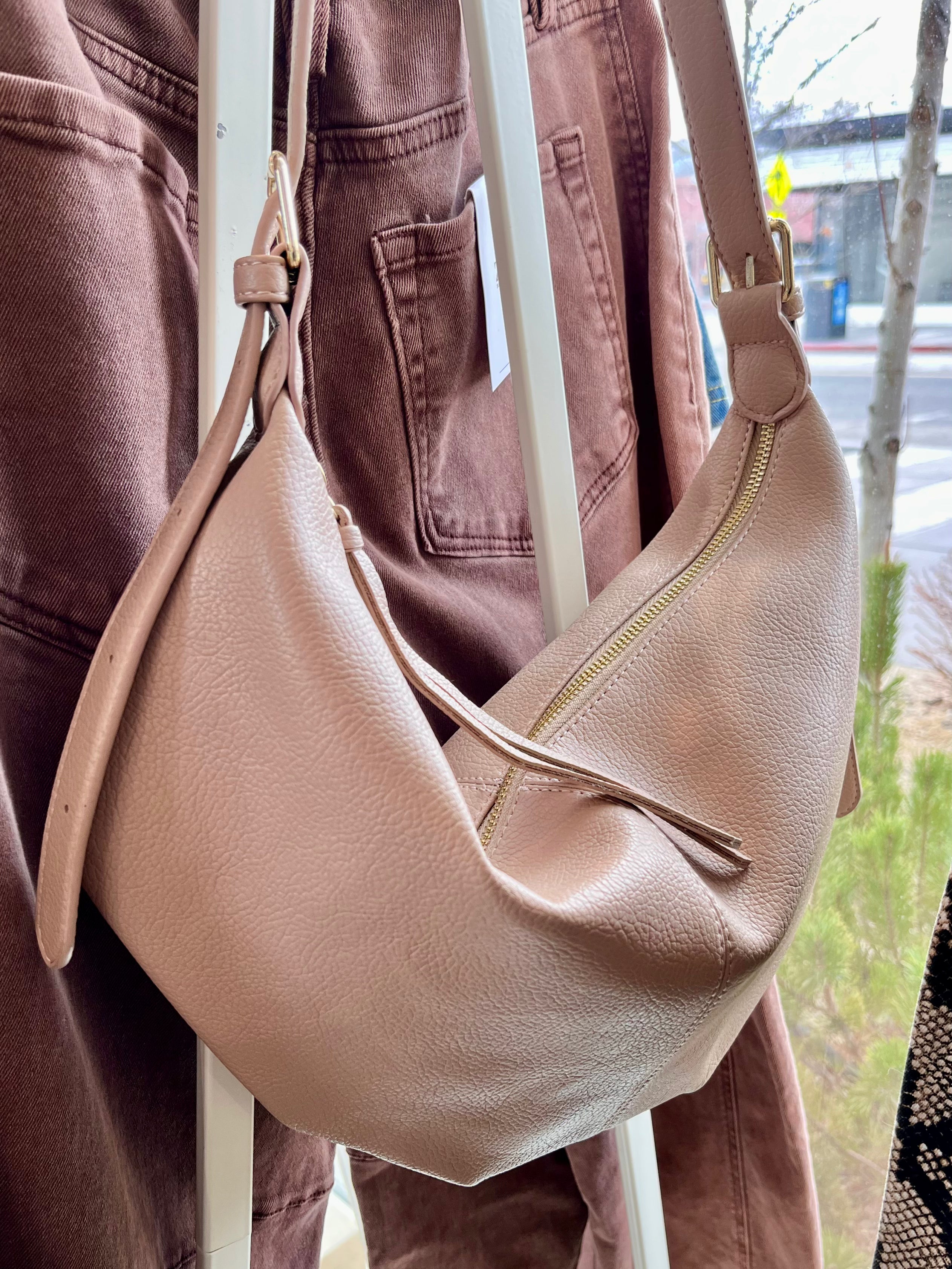 Faux Leather Crossbody Bag (Taupe)