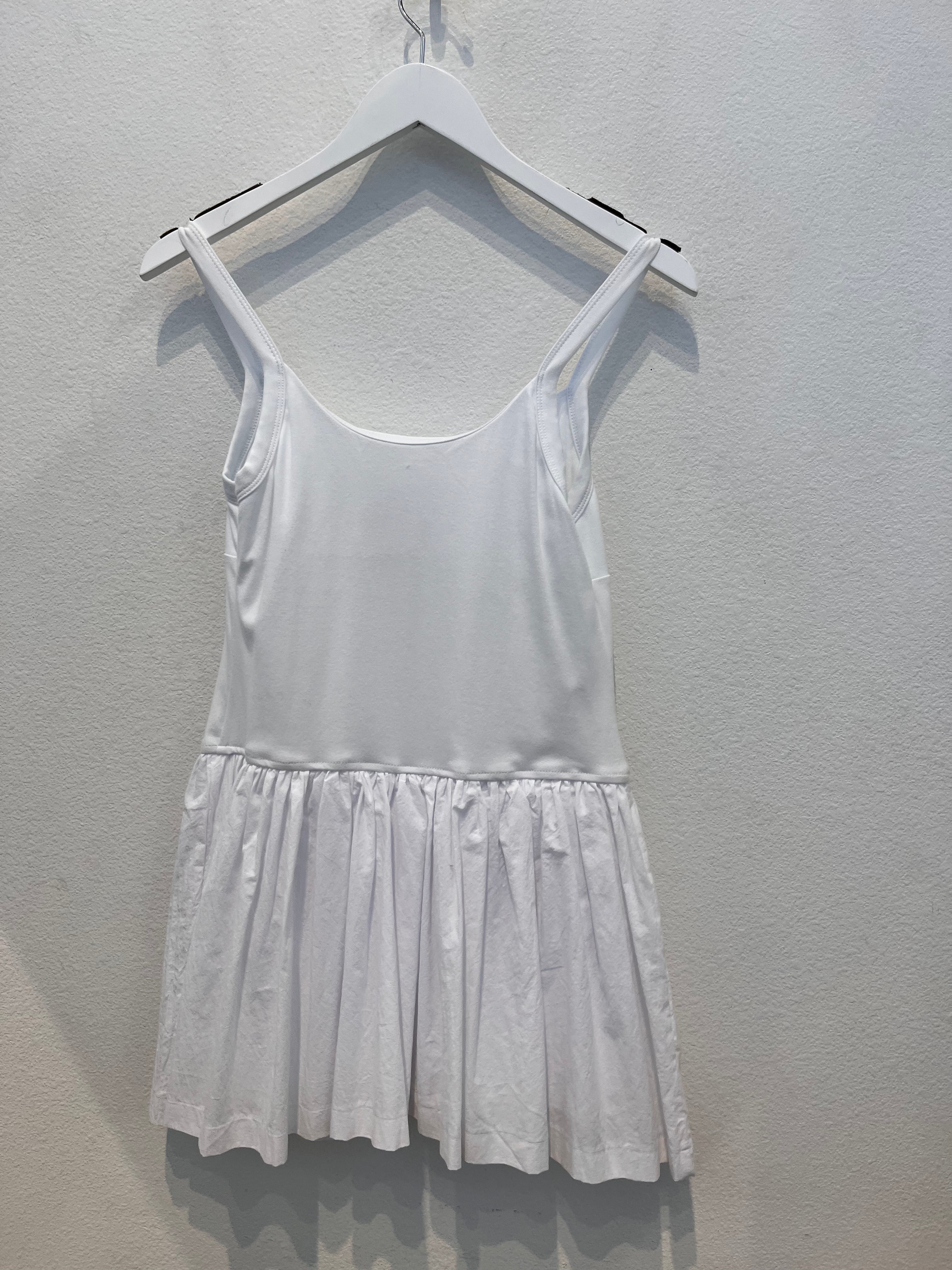 Effortless elegance meets sporty chic with this sleeveless skort dress. The defined basque waist creates a flattering silhouette while the built-in shorts provide comfort and freedom of movement—perfect for everything from brunch to weekend adventures. Clean white fabric keeps it fresh and versatile, pairing seamlessly with sneakers, sandals, or statement jewelry. A modern wardrobe essential that works as hard as you do.