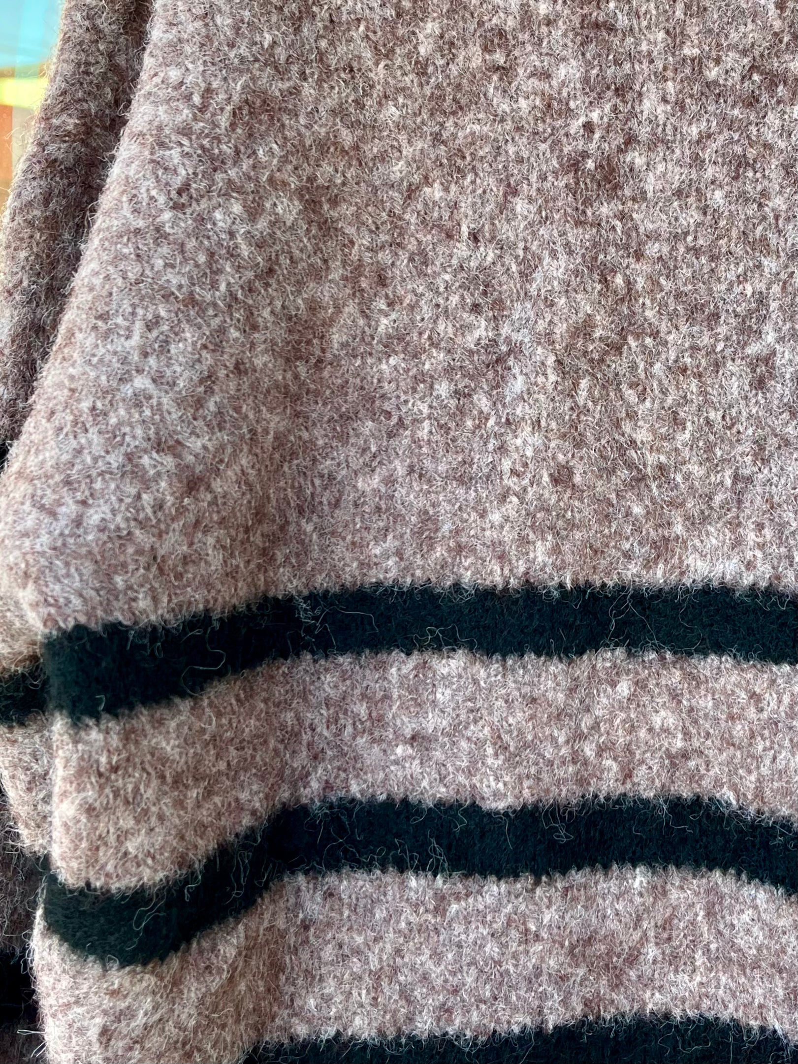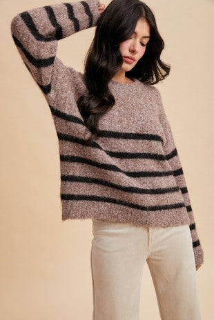 Wrap yourself in cozy comfort with this delightfully soft wool blend sweater. Featuring a playful striped pattern and irresistibly fuzzy texture, it's the perfect layering piece for effortless style. The relaxed crew neckline and easy fit make it ideal for casual days when you want to feel snug without sacrificing style. Whether you're curling up at home or heading out for weekend adventures, this sweater brings warmth and whimsy to your wardrobe rotation.