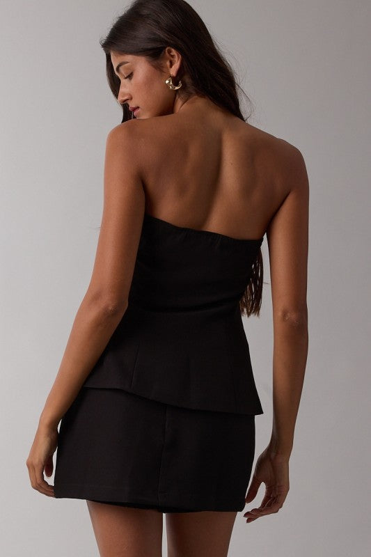 Elevate your wardrobe with this chic Executive Buttoned Set—a dynamic duo that effortlessly transitions from boardroom to brunch. The strapless tube top features a sophisticated formal vest-inspired design with front button-down detailing and a charming pocket accent, while the coordinating pencil mini skirt offers a sleek silhouette with hidden shorts for comfort and confidence. Crafted from a premium 92% poly/8% spandex blend, this set moves with you all day. Perfect for those who refuse to choose between polished and playful.