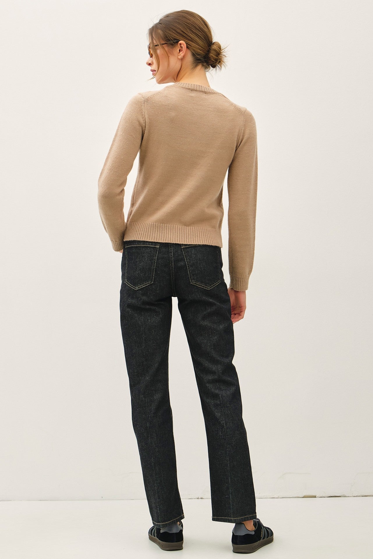 Embrace timeless comfort with the Kim Wool Blended Sweater in Mocha. This classic crew neck knit features long sleeves and a soft wool blend that keeps you cozy without sacrificing style. Perfect for everyday wear, its simple design pairs effortlessly with any outfit, offering warmth and understated elegance in one essential piece.