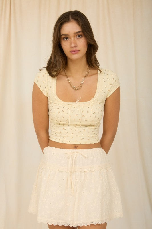 Madison Front Ribbon Crop Top (Butter Yellow Multi)