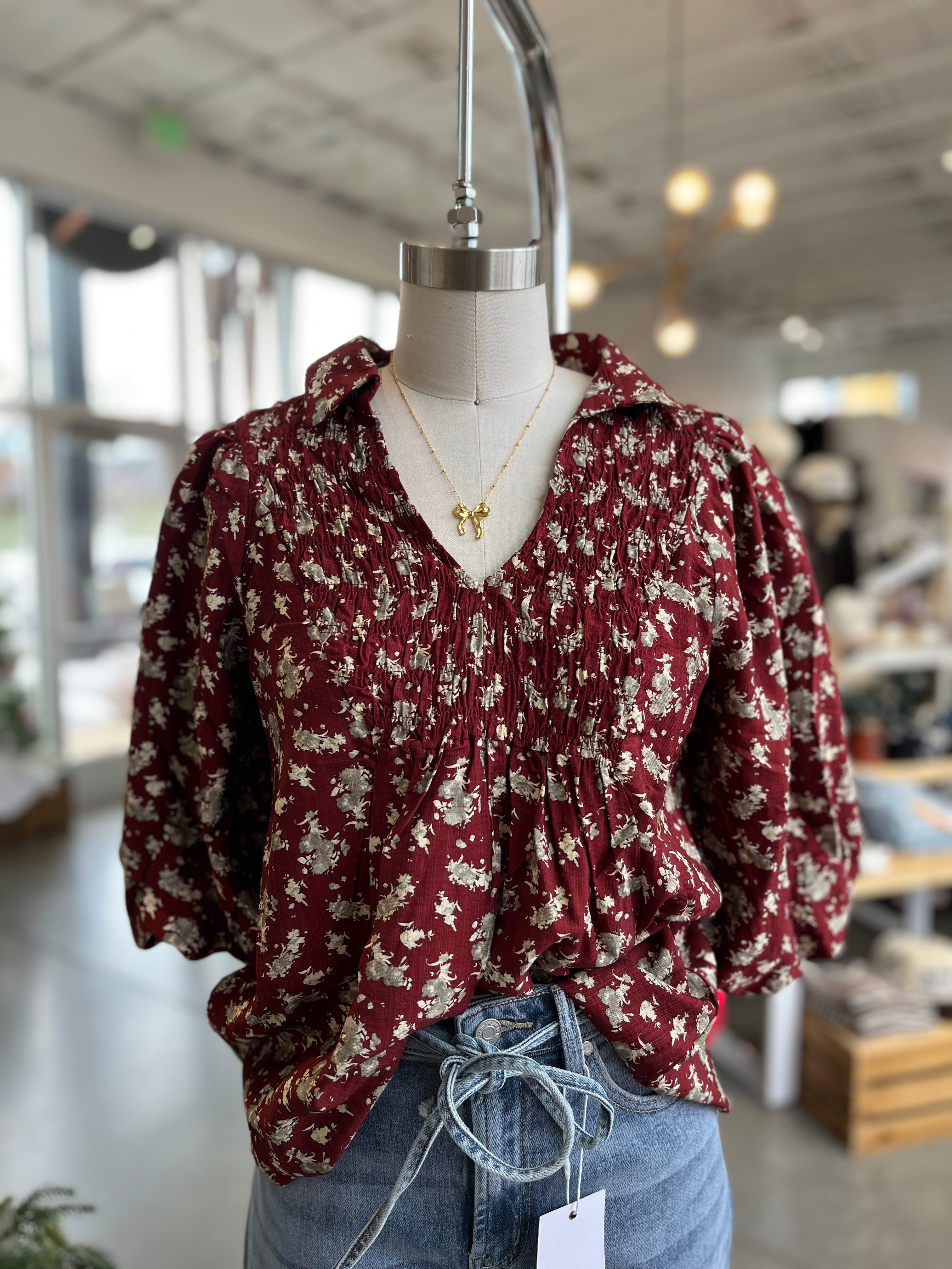 Introducing the Mayra Floral Blouse—where vintage charm meets modern flair! This delightful piece features intricate smocking details that add texture and visual interest, paired with a flattering V-neck collar. The signature balloon sleeves gather at the elbow for a playful, romantic silhouette that's equal parts whimsical and wearable. A loose, swing hem keeps things breezy and comfortable, making it perfect for everything from brunch dates to casual office days. Dress it up or down—this floral beauty is your new go-to for effortless style with personality.