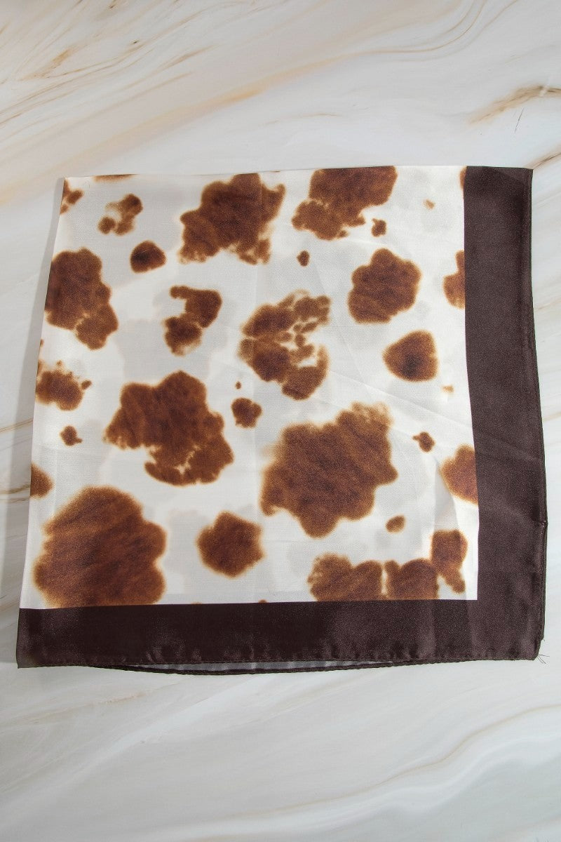 Brown Cow Print Square Bandana Scarf