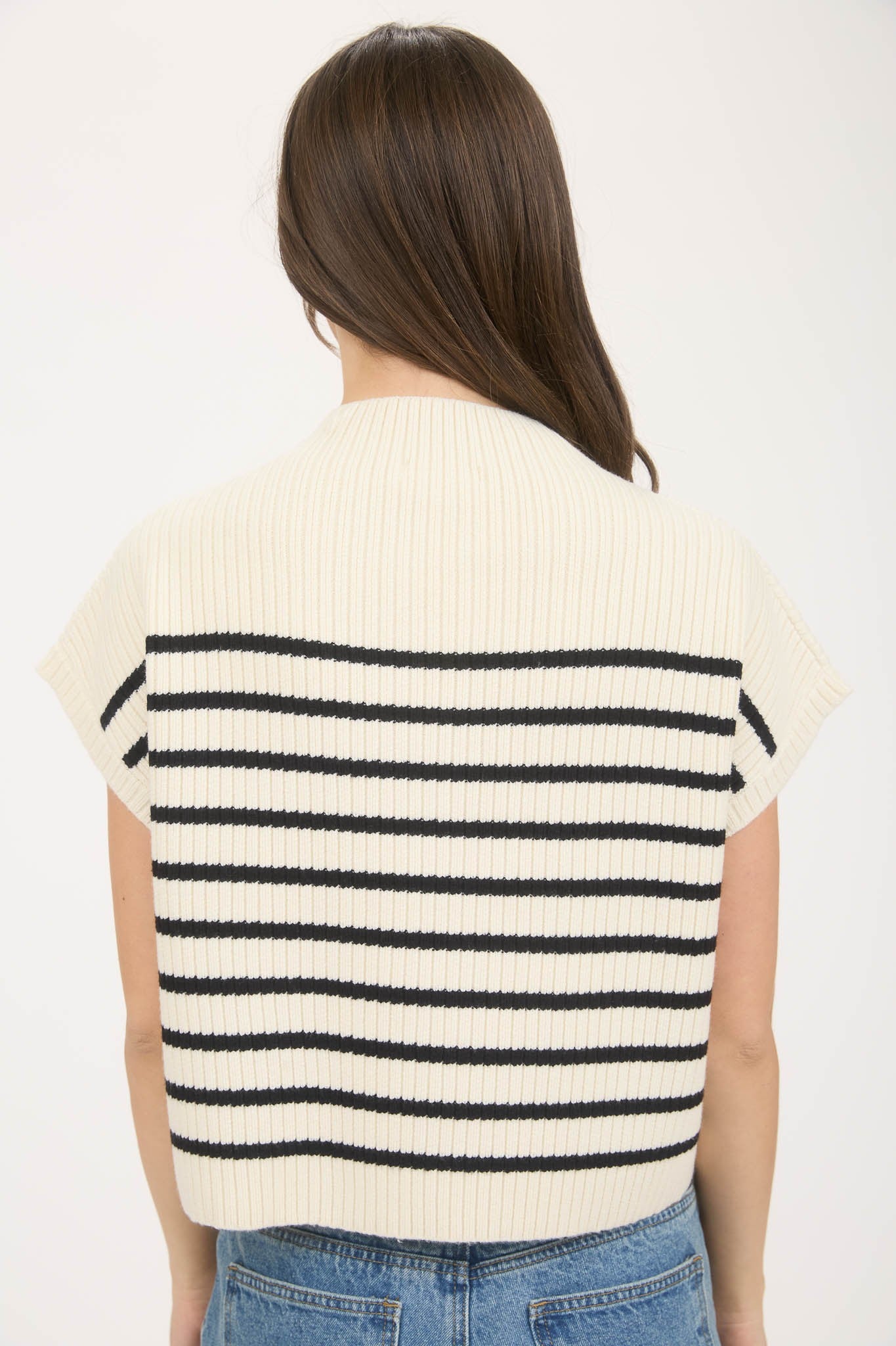 Ryland Stripe Mock Neck Sweater (Ivory)