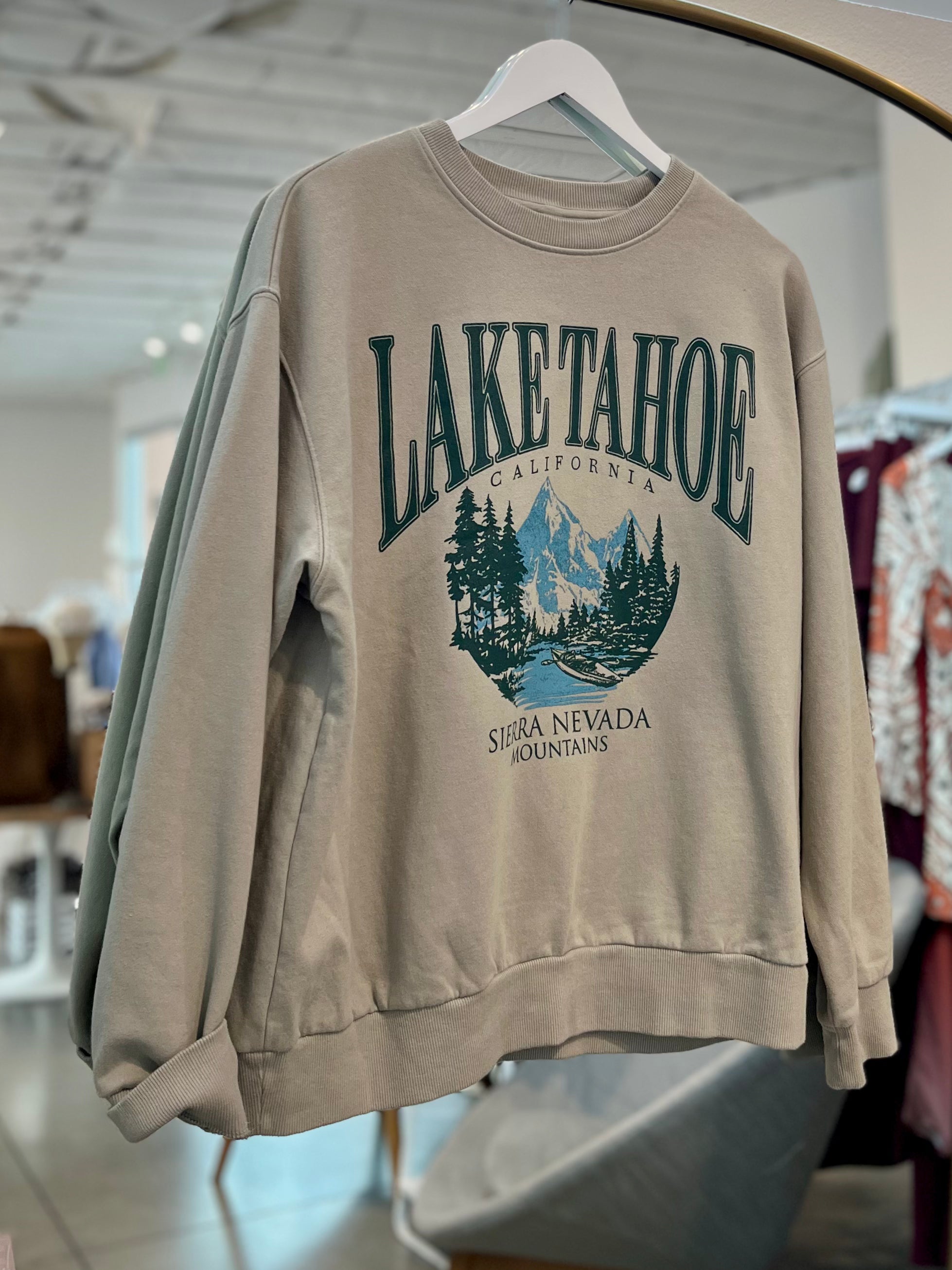 Elevate your cozy style with the Tahoe Sierra Nevada Crewneck. The iconic graphic of Lake Tahoe, California adds a touch of adventure to this brushed sweatshirt. Classic crew neckline and drop shoulder sleeves make it your go-to, while soft fabrication keeps you snug. Grab this effortless essential today!